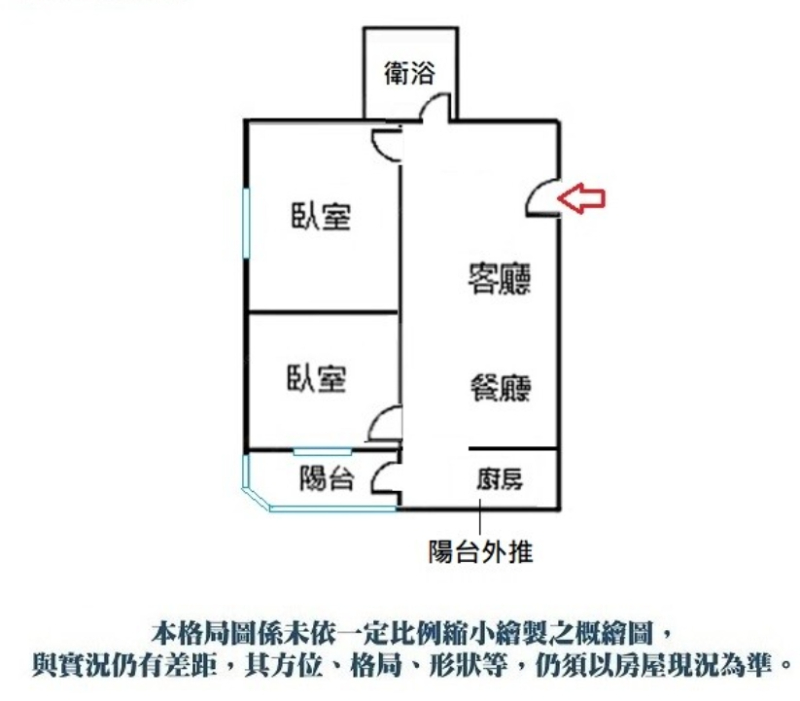 2房/ 1廳/ 1衛/ 1陽台